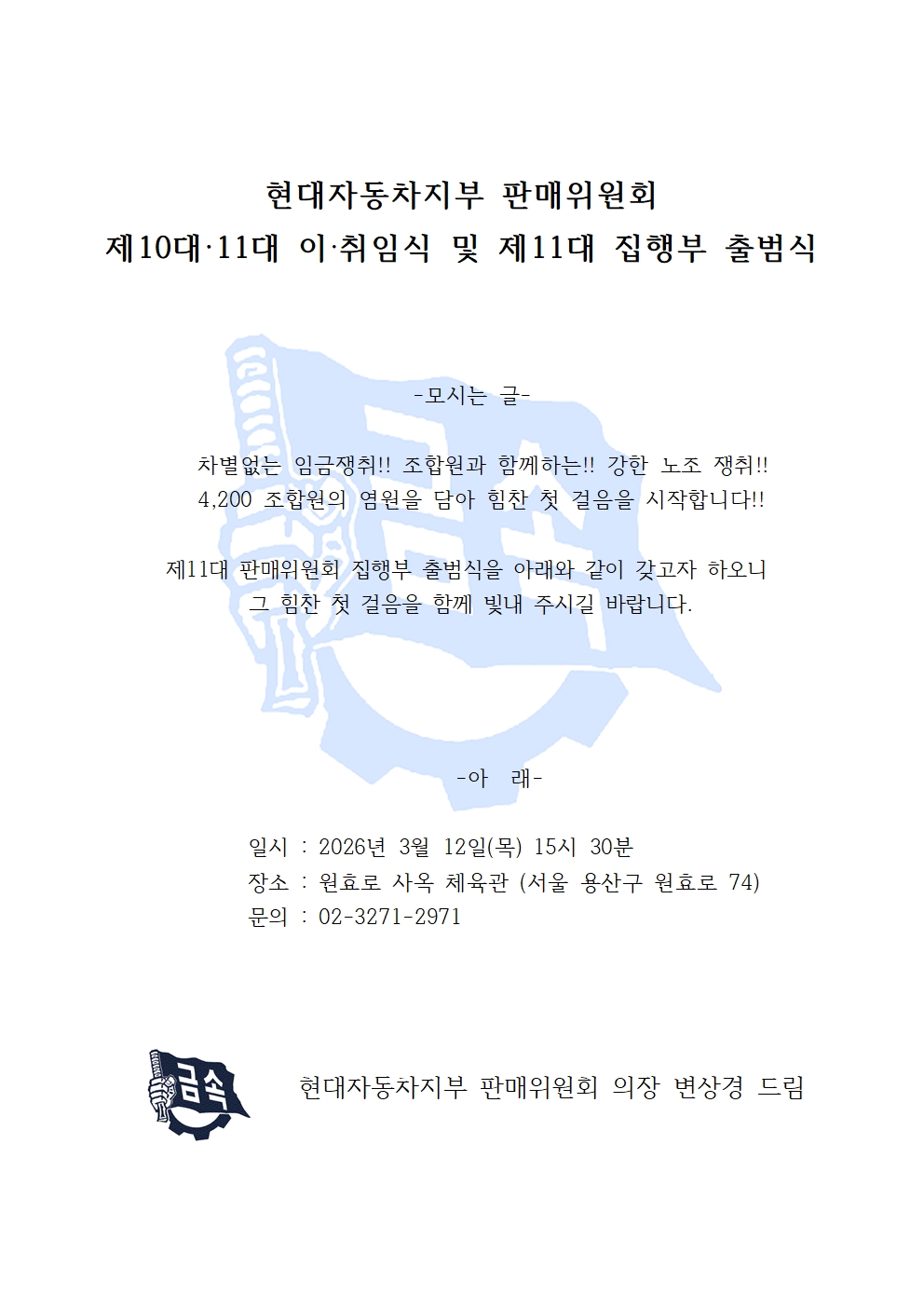 [공문] 판매위원회 제10대, 11대 이,취침식 및 제11대 집행부 출범식 관련의 건