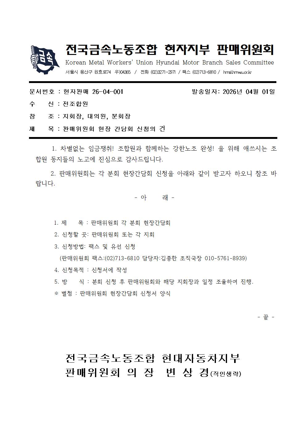 [공문] 26년 1/4분기 판매중앙노사협의 개최 건
