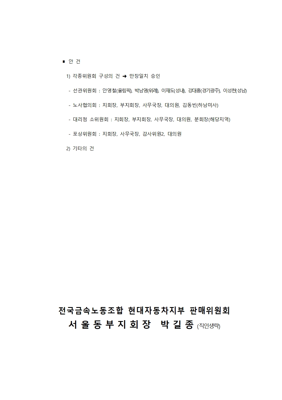 서울동부지회 선거관리위원 소집의 건