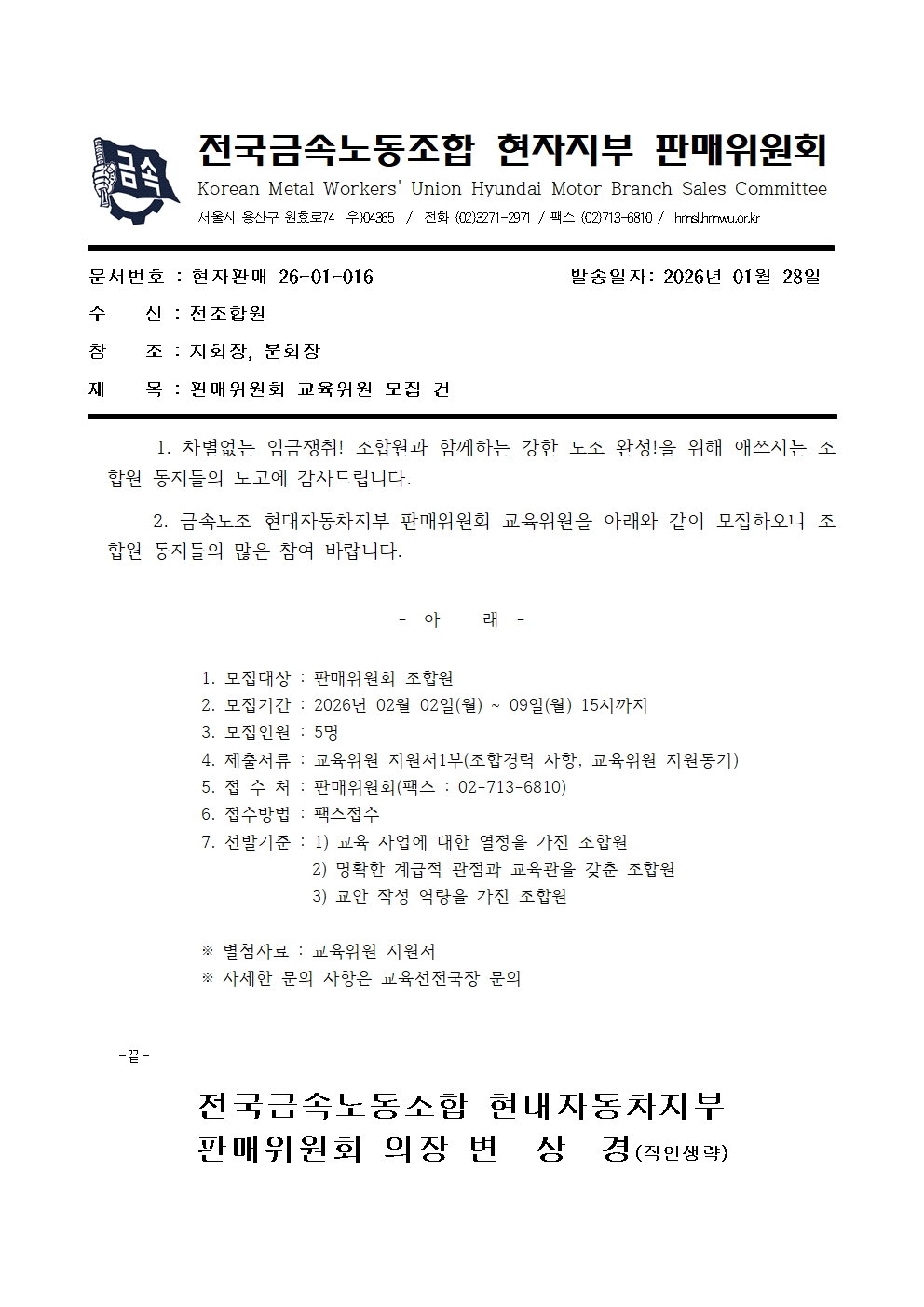 [공문]판매위원회 교육위원 모집 건