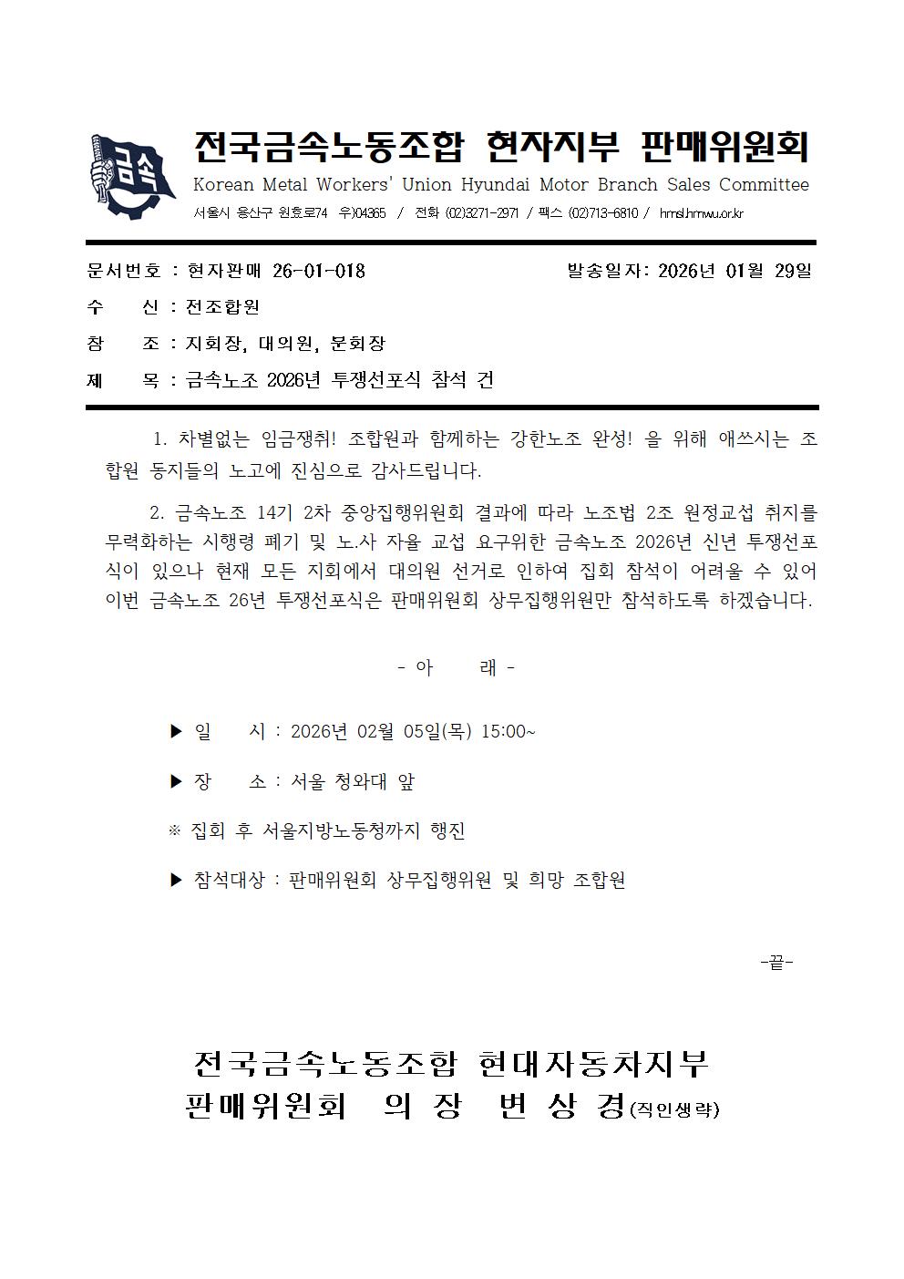 [공문]금속노조 2026년 투쟁선포식 참석 건